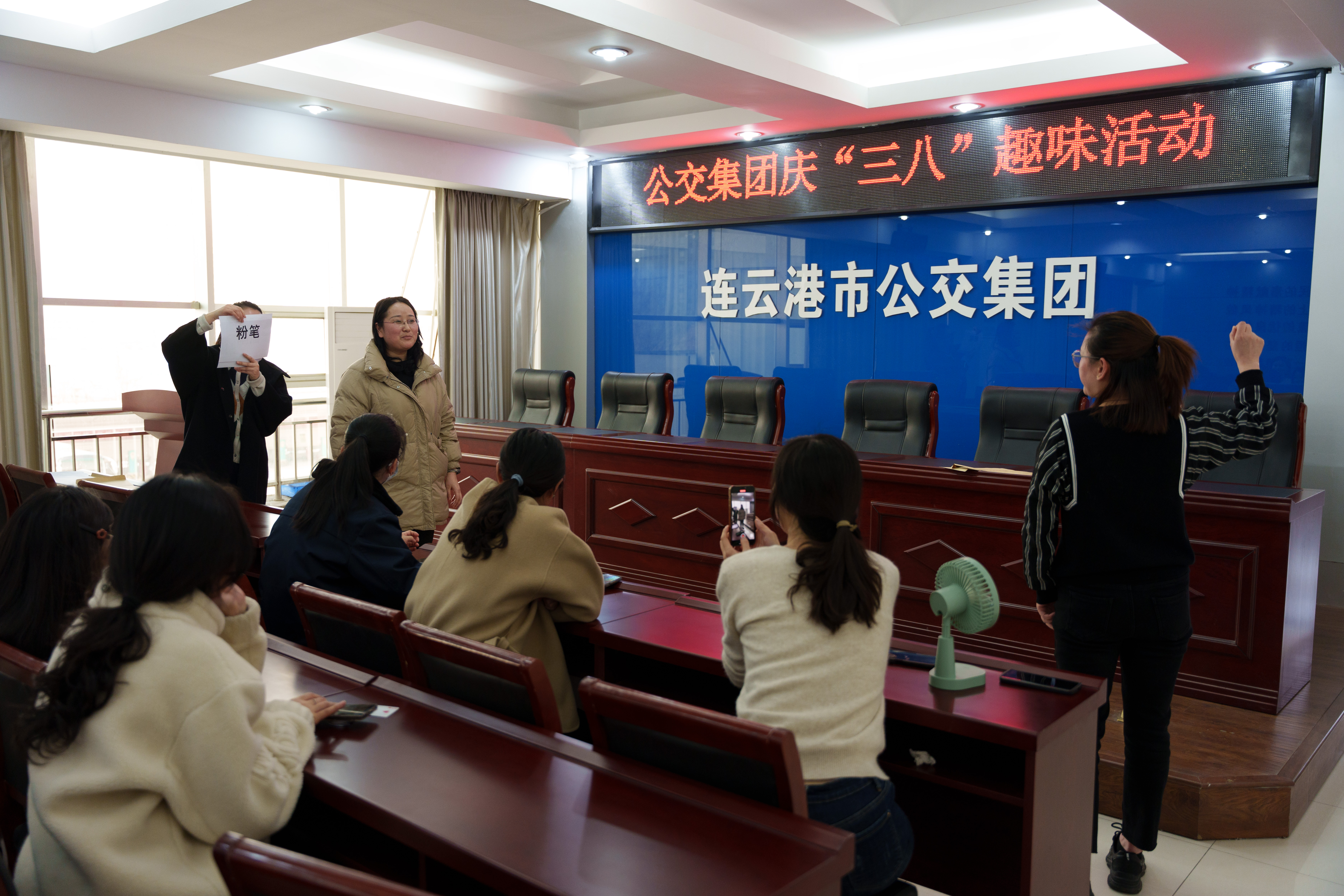 活动以“魅力女性,快乐巾帼”为主题,分为“螃蟹赛跑”、“两人三足”、“你比划我猜”共3项小游戏。在“螃蟹赛跑”活动中,每组两人背对背用躯干夹抵住一气球,像螃蟹一样横着跑,大家你追我赶,有的甚至还将气球夹爆,引来现场阵阵笑声。“两人三足”活动中,经过提前热身,大家有节奏地比赛着。“你比划我猜”是大家比较期待的小游戏,平时只在电视综艺节目里看见,今天,大家以抽签的形式组成一队,在“孙悟空”“抹指甲油”“一日三检”“指鹿为马”等词语的比划中,女职工们手舞足蹈,绘声绘色地比划着。