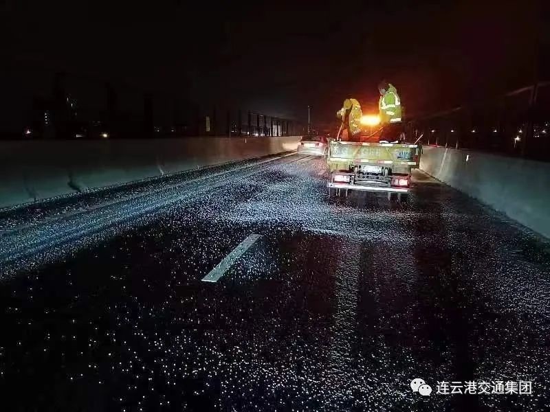 综合客运枢纽执行全天候除雪防滑备勤预案,在人行道、进站口匝道等多处抛洒融雪剂,必要时将进行除冰作业,防止由路面结冰导致的车辆打滑、旅客摔倒。保障电子线路稳定,确保电子大屏运行正常,并力保春节亮化工程如期完工;港城大道、新墟互通、朝阳互通等道路及匝道,及时全面抛洒融雪剂,消除路面冰患;石梁河水库全部项目停止作业,采运砂船舶、养殖作业船舶全部停靠码头,并对船舶内管线进行保温处理……