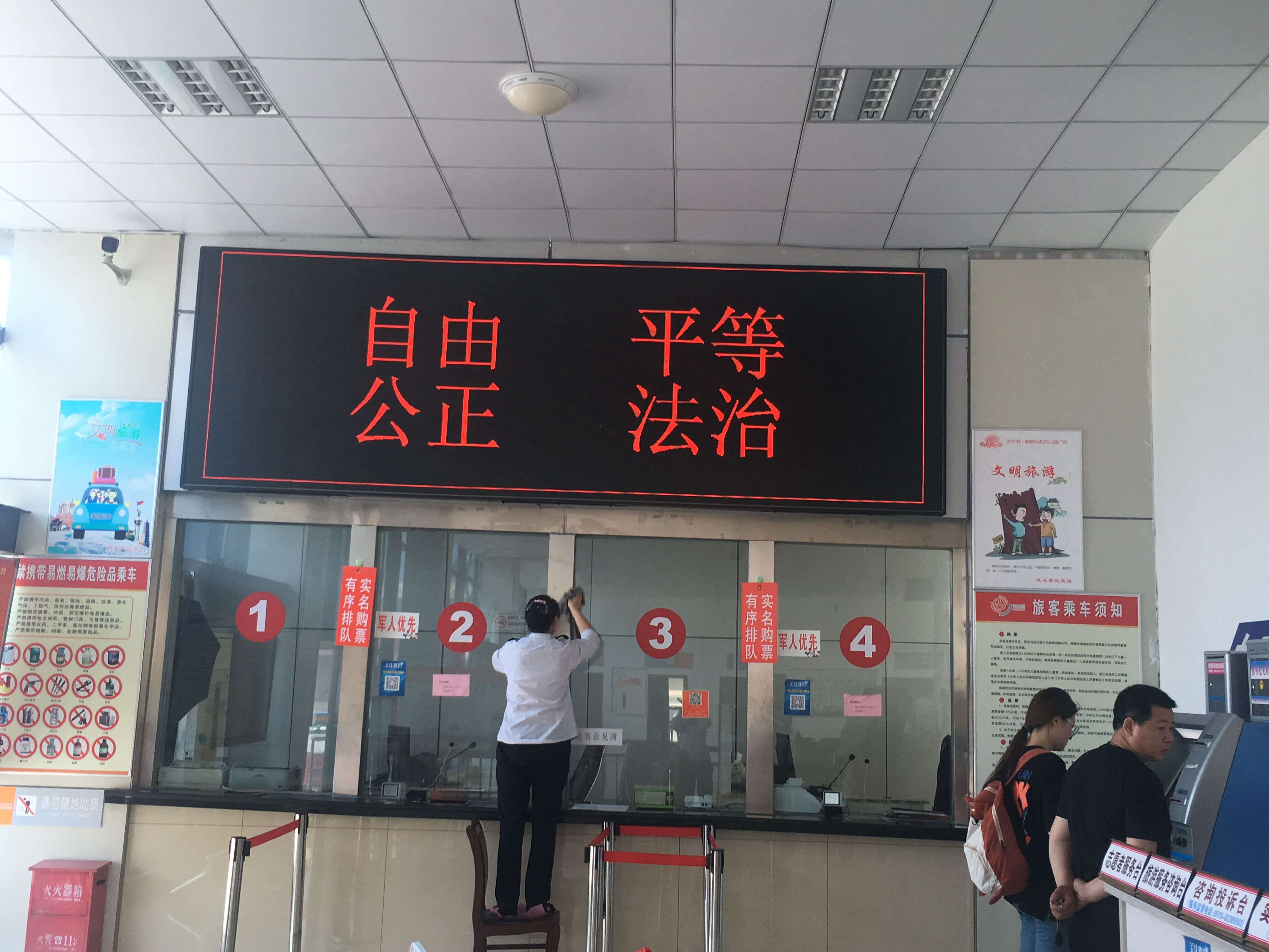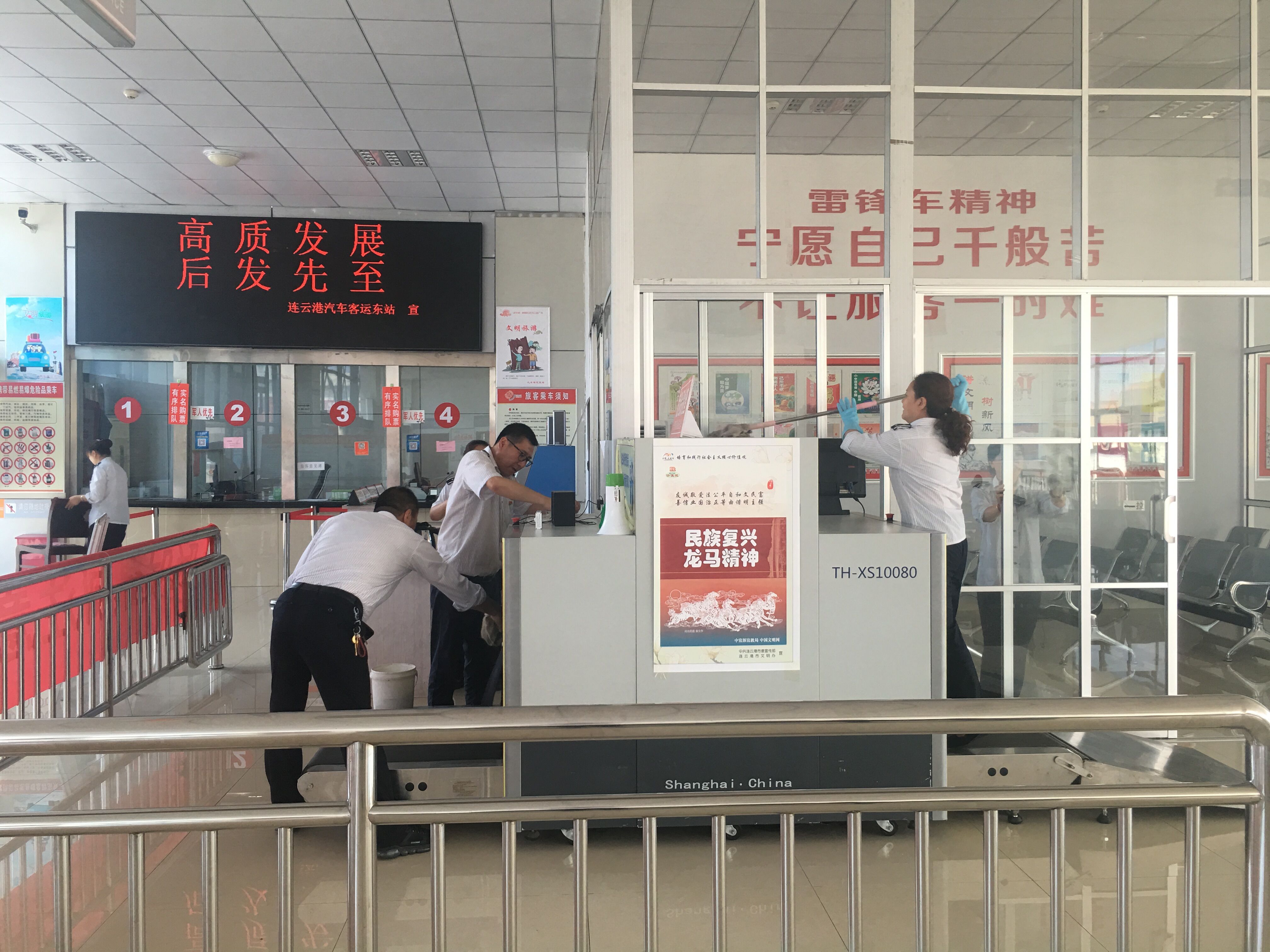 活动对清洗区域进行划分,党员干部和站务人员分工协作,一班组负责站前广场和进站口的玻璃,二班组负责发车区和检票口的玻璃,大家按照分组拿起工具,加入擦玻璃净环境的行动中大家配合有序,有的拿抹布,有的拿水盆,充分发扬不怕脏、不怕累的优良作风和团结协作的精神,经过将近1个小时的的共同努力,客运东站的玻璃被清理的干干净净,焕然一新。
