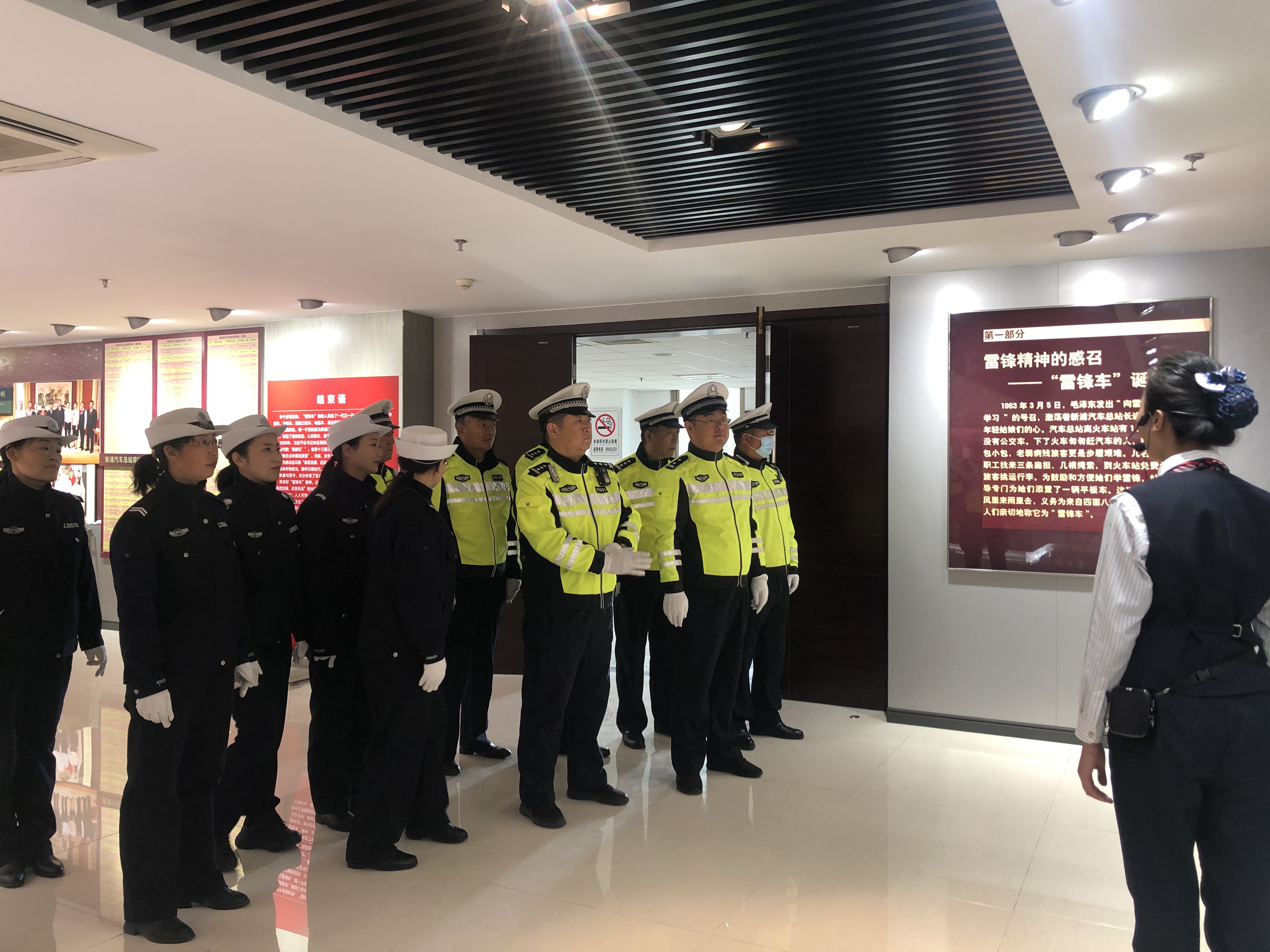 10月28日上午,连云港市交巡警二大队民警、辅警一行前往“雷锋车”事迹陈列馆参观交流,新浦汽车站党支部书记、站长王平、支部副书记权太琦一同参观交流。