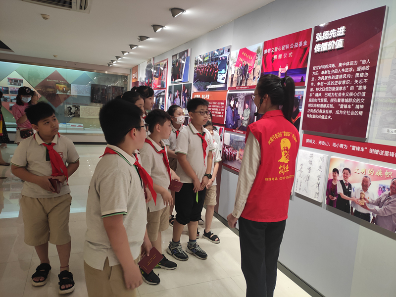 8月28日下午,“雷锋车”事迹陈列馆迎来了一批“红领巾”。他们是解放路小学的学生,紧跟在身后的是一同参观的家长和老师。新浦汽车总站党支部副书记权太琦一同参观。