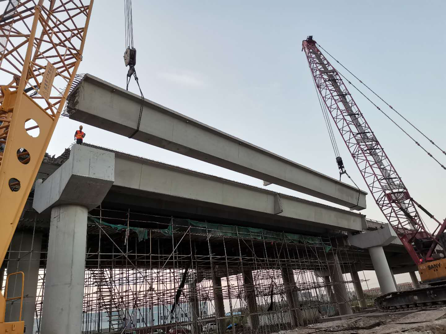 因箱梁架设需对连霍高速既有桥梁防撞墙、翼缘板进行破除,需对既有高速实施封闭施工交通管制,封闭时间从8月27日起至12月31日。为保障本市旅游业及港口关联企业生产经营不受连霍高速新墟互通新增匝道施工影响,市交通乐投app最新版下载,乐投(中国)调整交通组织方案,由全幅封闭改为半幅封闭半幅借道通车模式,给工程进度管理以及施工安全带来较大困难。为了确保年底建成这一工期目标,交通乐投app最新版下载,乐投(中国)组织参建单位研究细化施工方案,结合项目施工的特点,增加一倍架梁设备,这将有效缩短架梁施工周期。