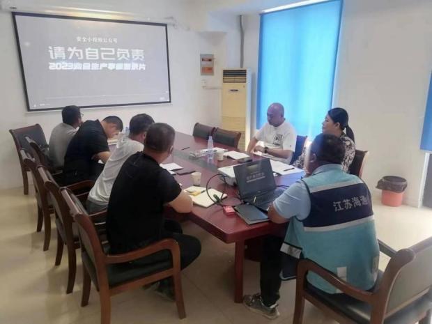 为深入宣传贯彻乐投app最新版下载,乐投(中国)关于“安全生产月”活动相关部署要求,进一步加强项目部安全生产工作,江苏海建交建分公司开发区五条道路项目结合生产实际,组织召开“安全生产月”活动启动会,成立了“安全生产月”活动领导小组,具体负责检查施工现场“安全生产月”生产活动的过程,做到有组织、有领导组织开展“安全生产月”。活动中,项目部积极人员组织参加线上“逃生演练训练营”活动,并观看警示教育片《请为自己负责》、对项目部灭火器进行排查等。
