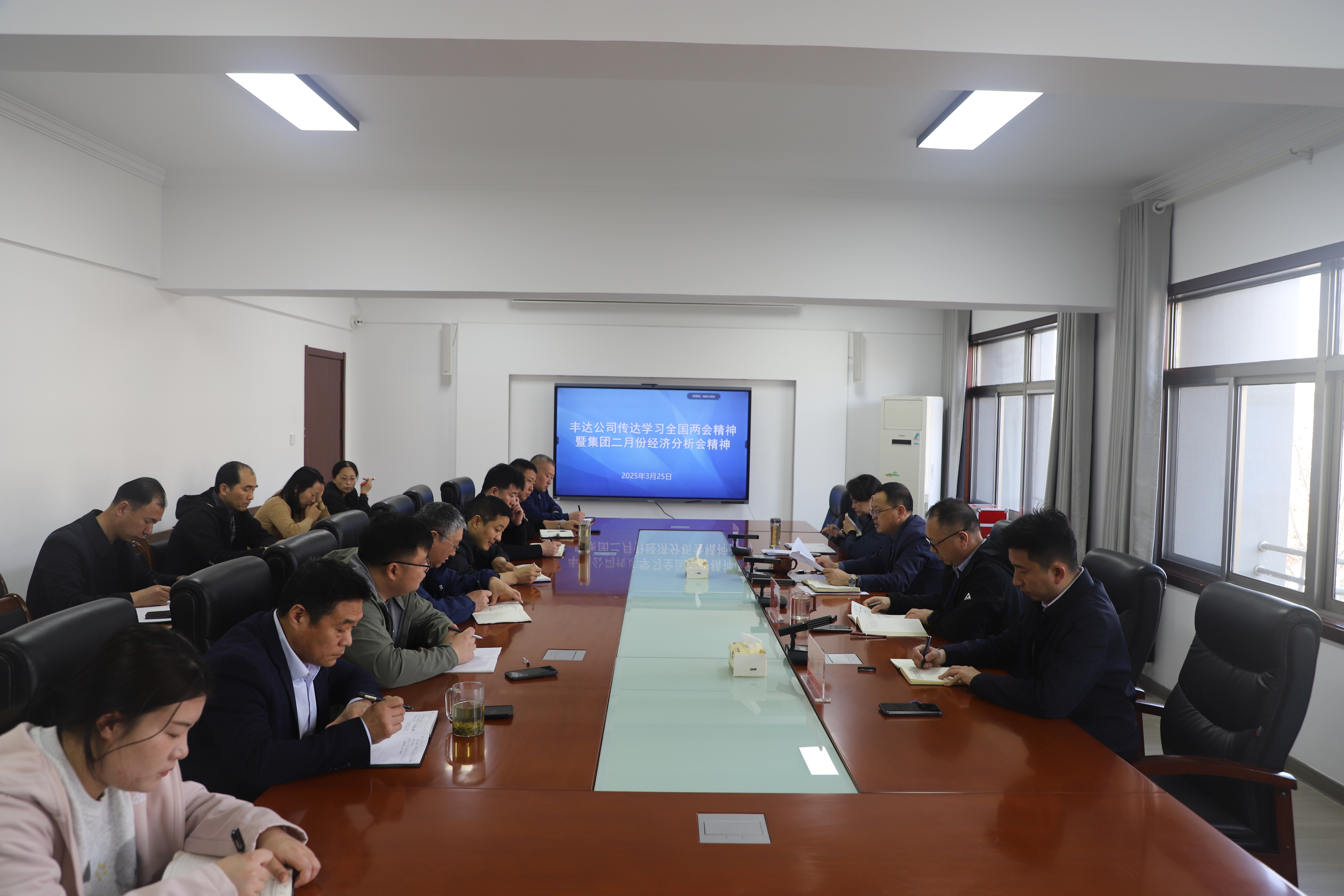 3月25日上午,丰达公司召开学习宣传贯彻全国“两会”精神和传达乐投app最新版下载,乐投(中国)二月份经济运行分析会精神会议,丰达公司领导班子成员、各单位负责人、各部门负责人共计15人参加会议,会议由公司党总支书记、董事长王梁洲主持。