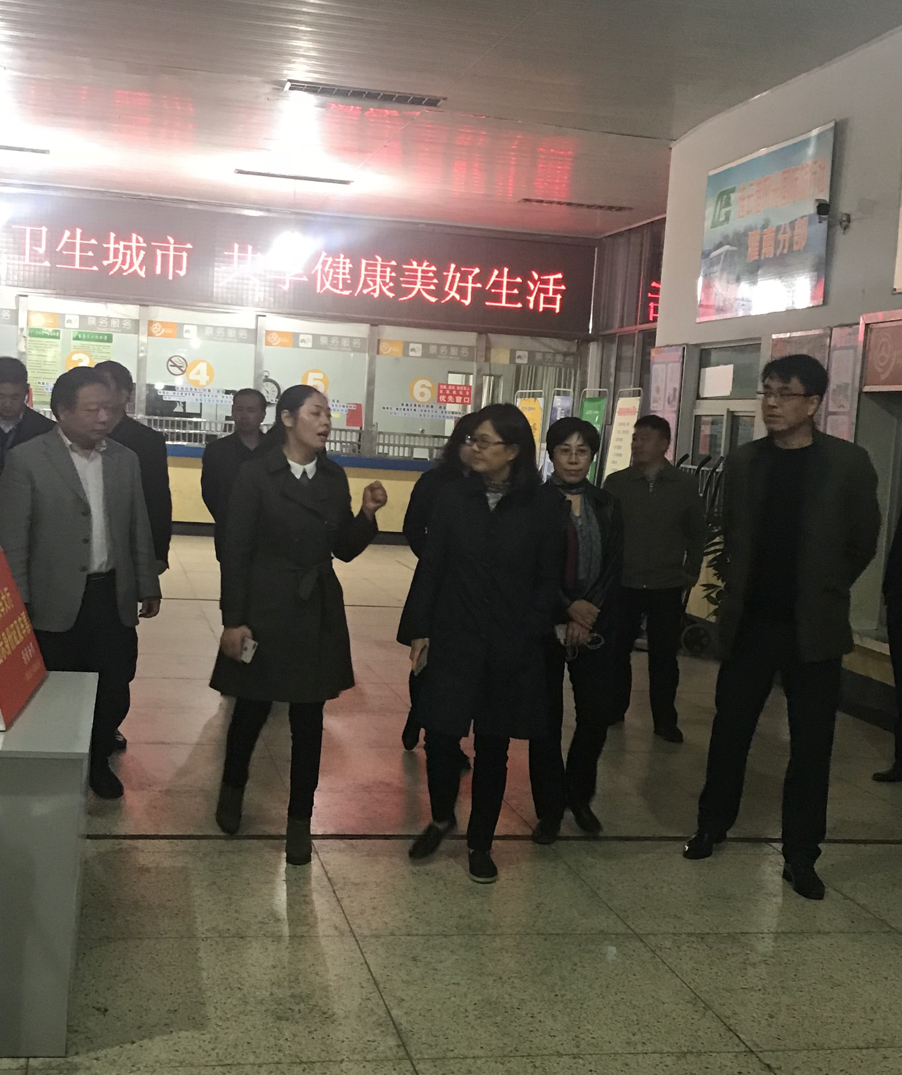 检查组一行查看了客运总站售票窗口及候车大厅等公共场所的卫生情况,然后又到容易存在卫生问题的便民超市及车站公共厕所进行了检查,并仔细询问创卫工作的相关问题。检查组对车站的卫生创建工作表示了肯定。