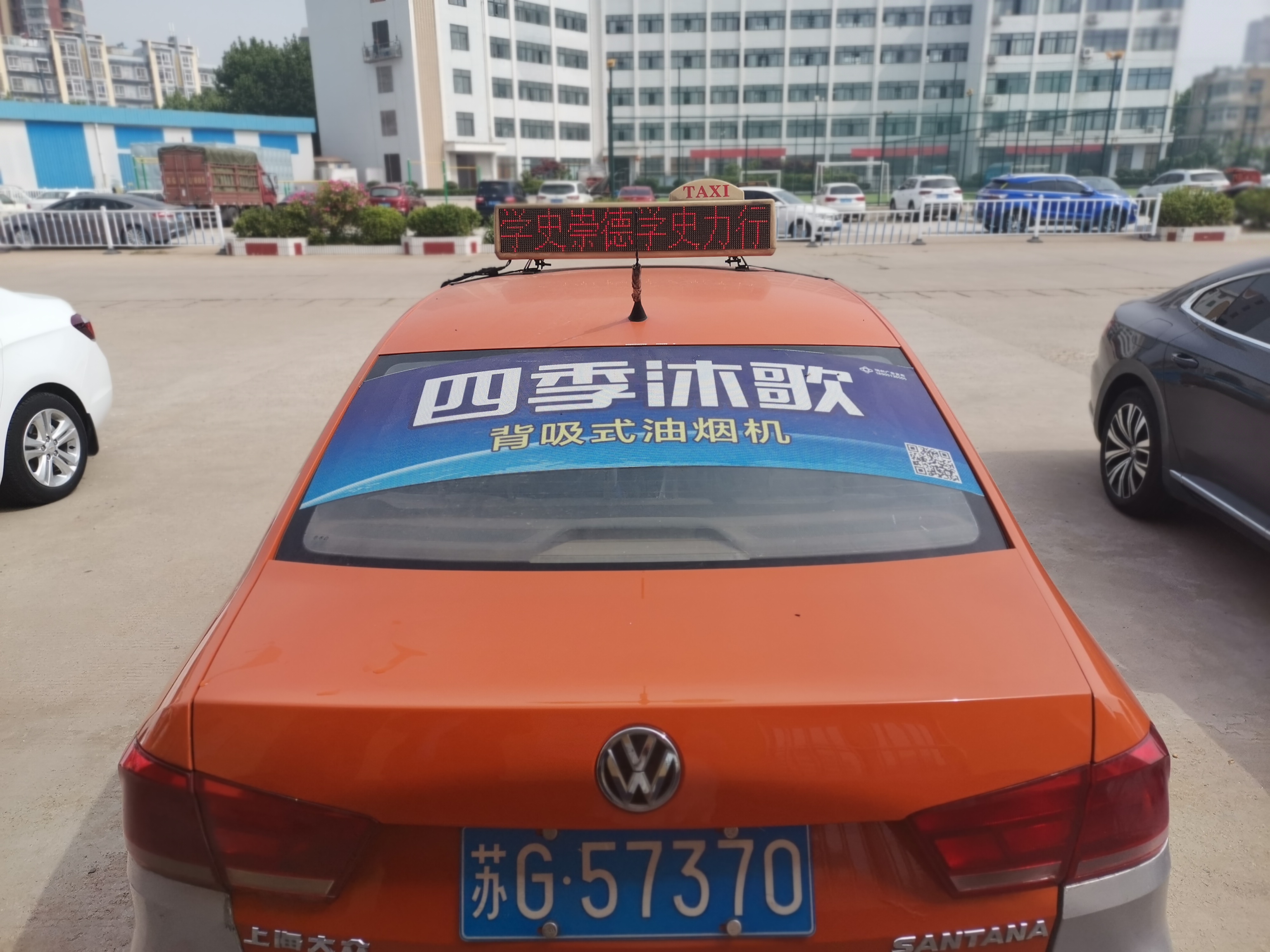 市区出租车顶灯党史学习标语打造靓丽风景线