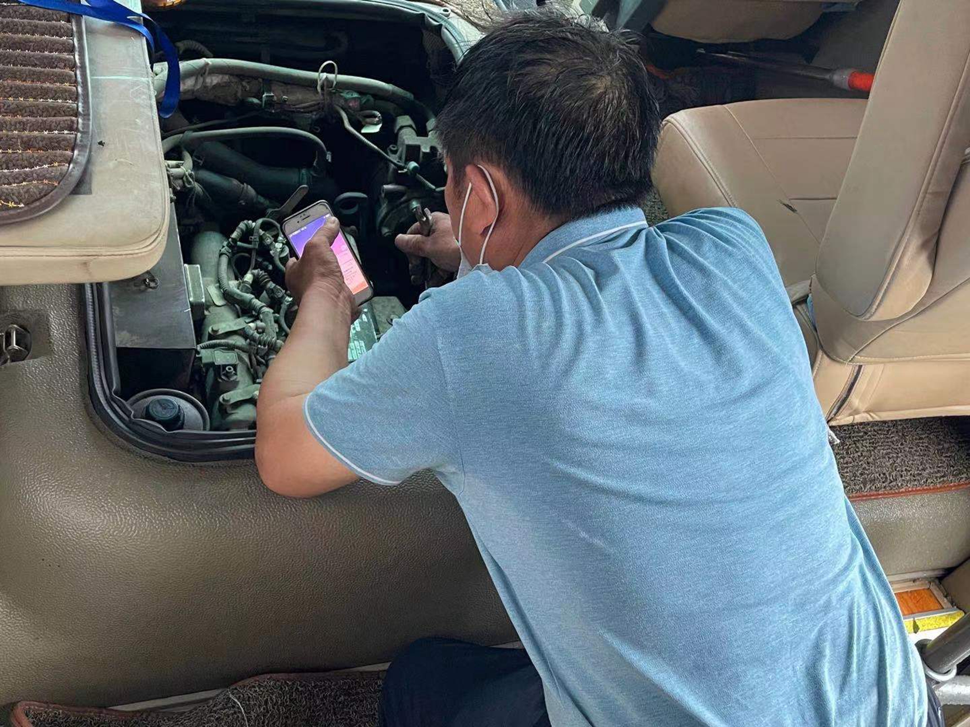 经过检查,两位师傅发现是车辆马达烧毁,修理厂立即对马达进行修理更换。在一个半小时的努力抢修下,车辆恢复正常。