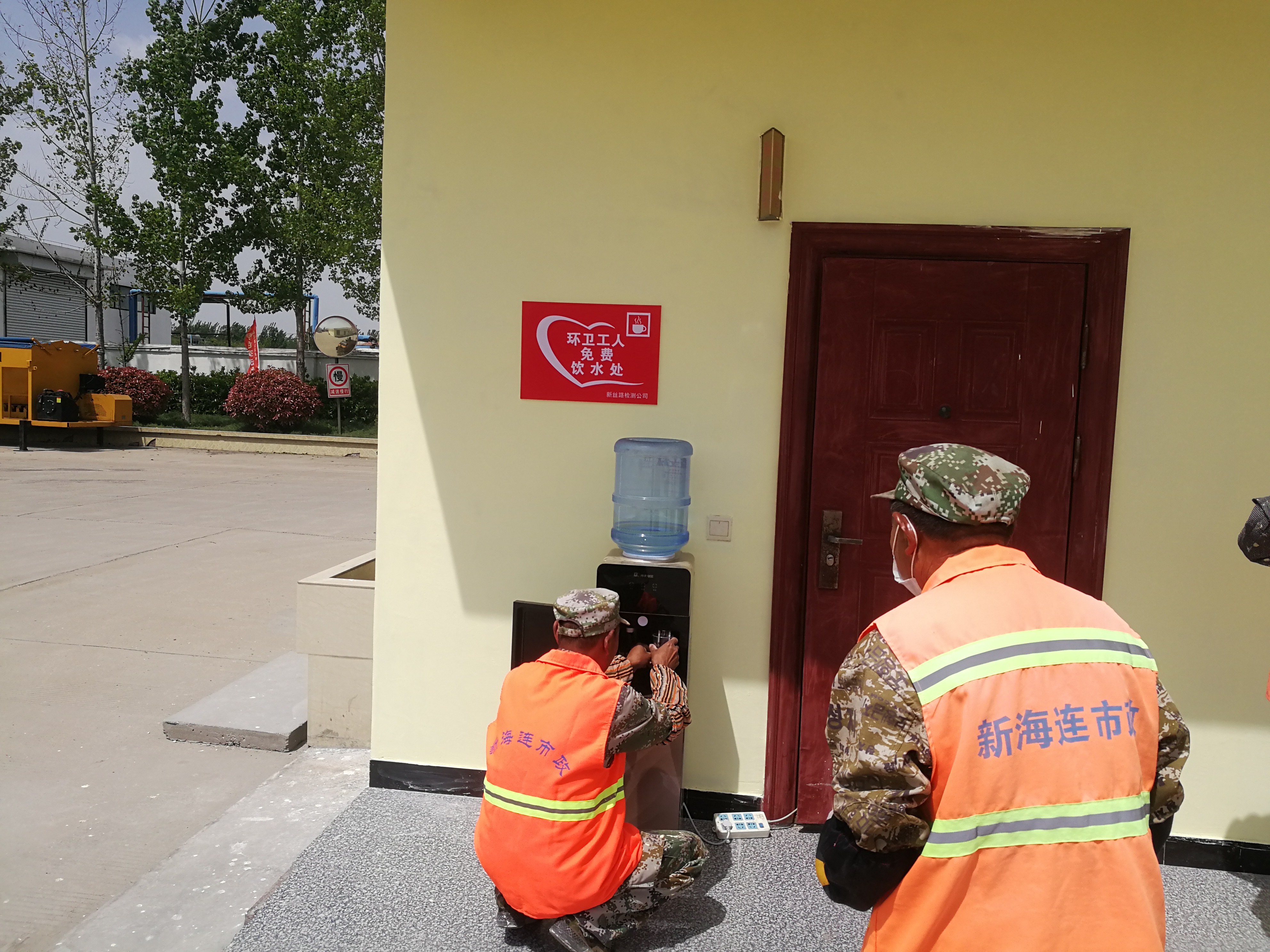为充分落实海建公司“为民办实事”工作部署安排,近日新丝路检测公司购置了一台品牌饮水机及若干桶纯净水,放置在公司院内办公楼处,为附近环卫工人免费提供饮用水。