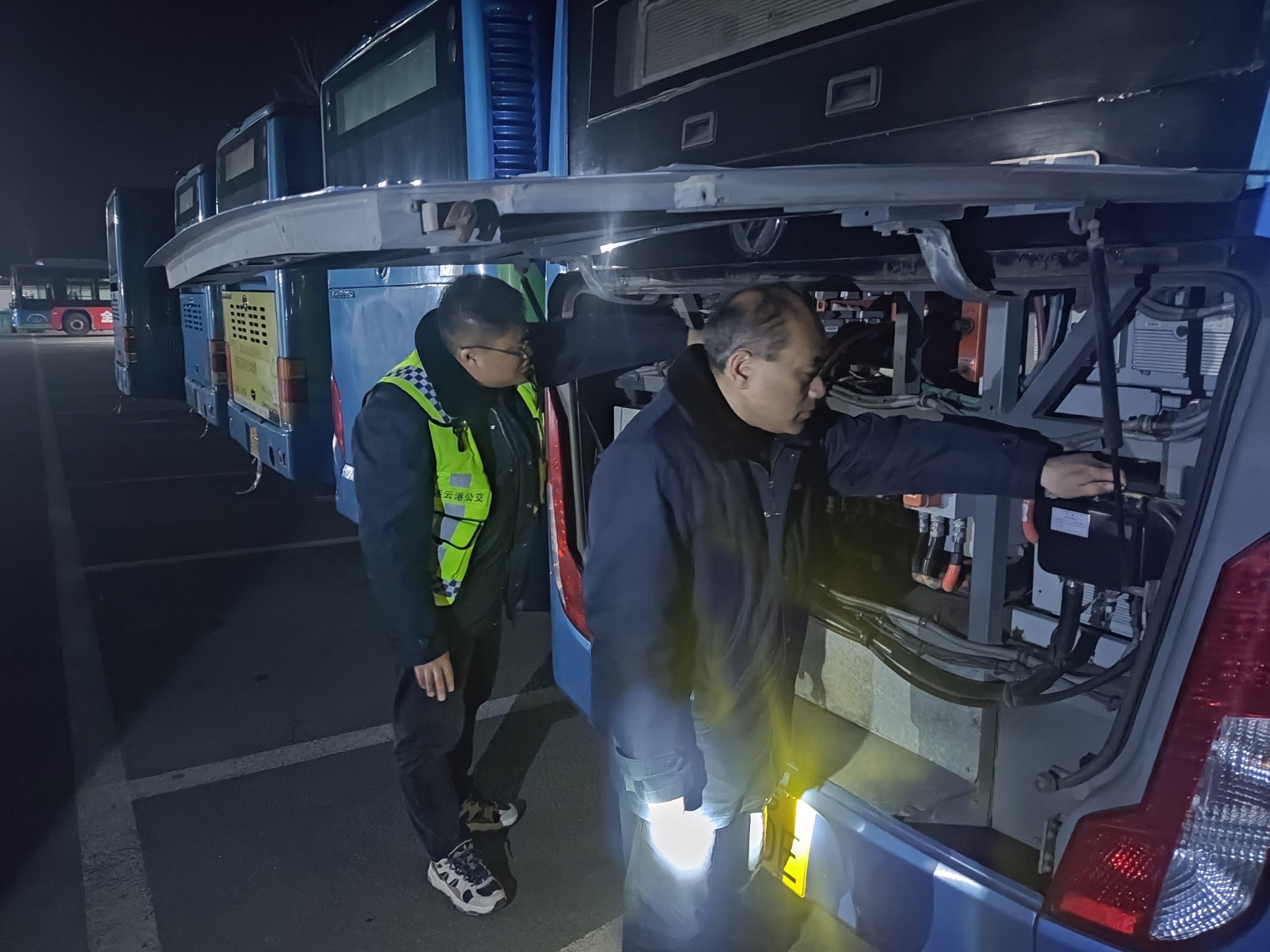 近日,公交集团在新坝场站启动了夜查行动,旨在进一步巩固公交运营的安全基础,全力构建坚固的安全防线。