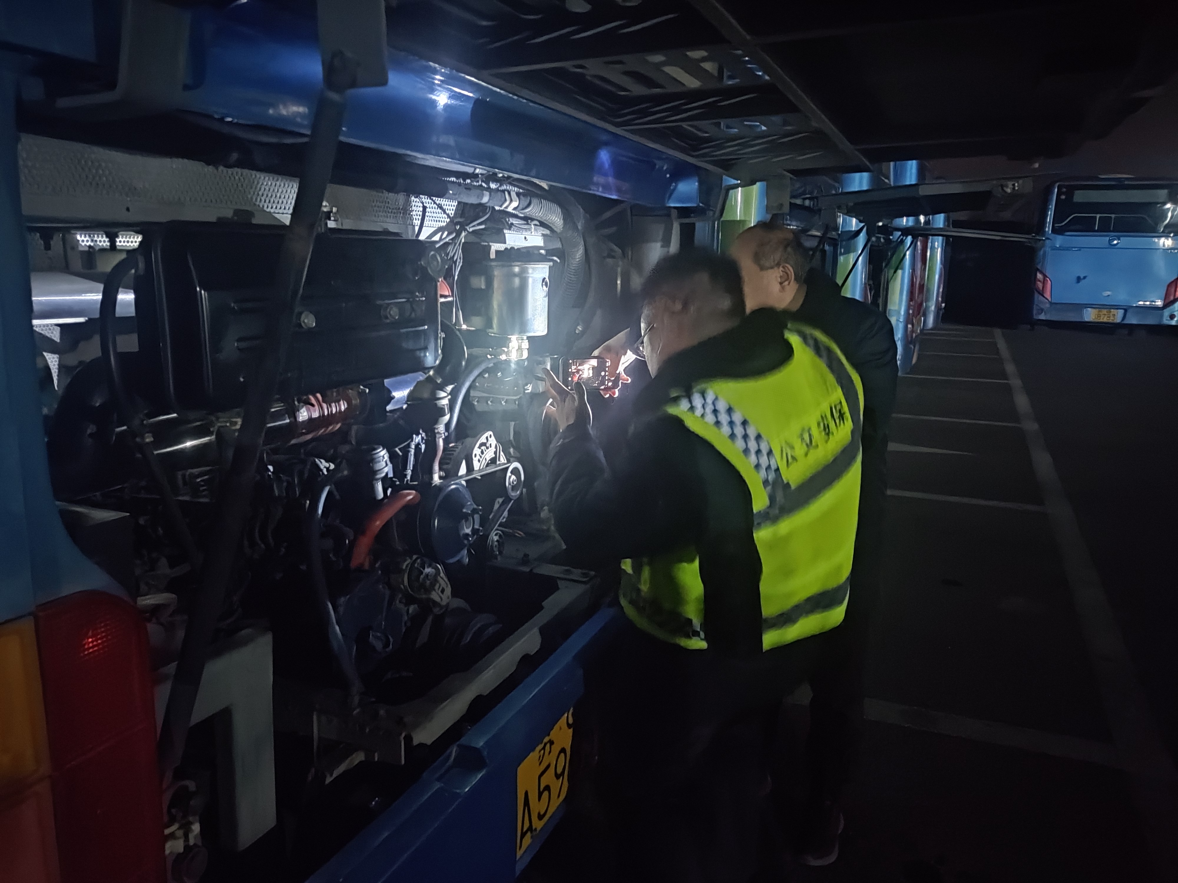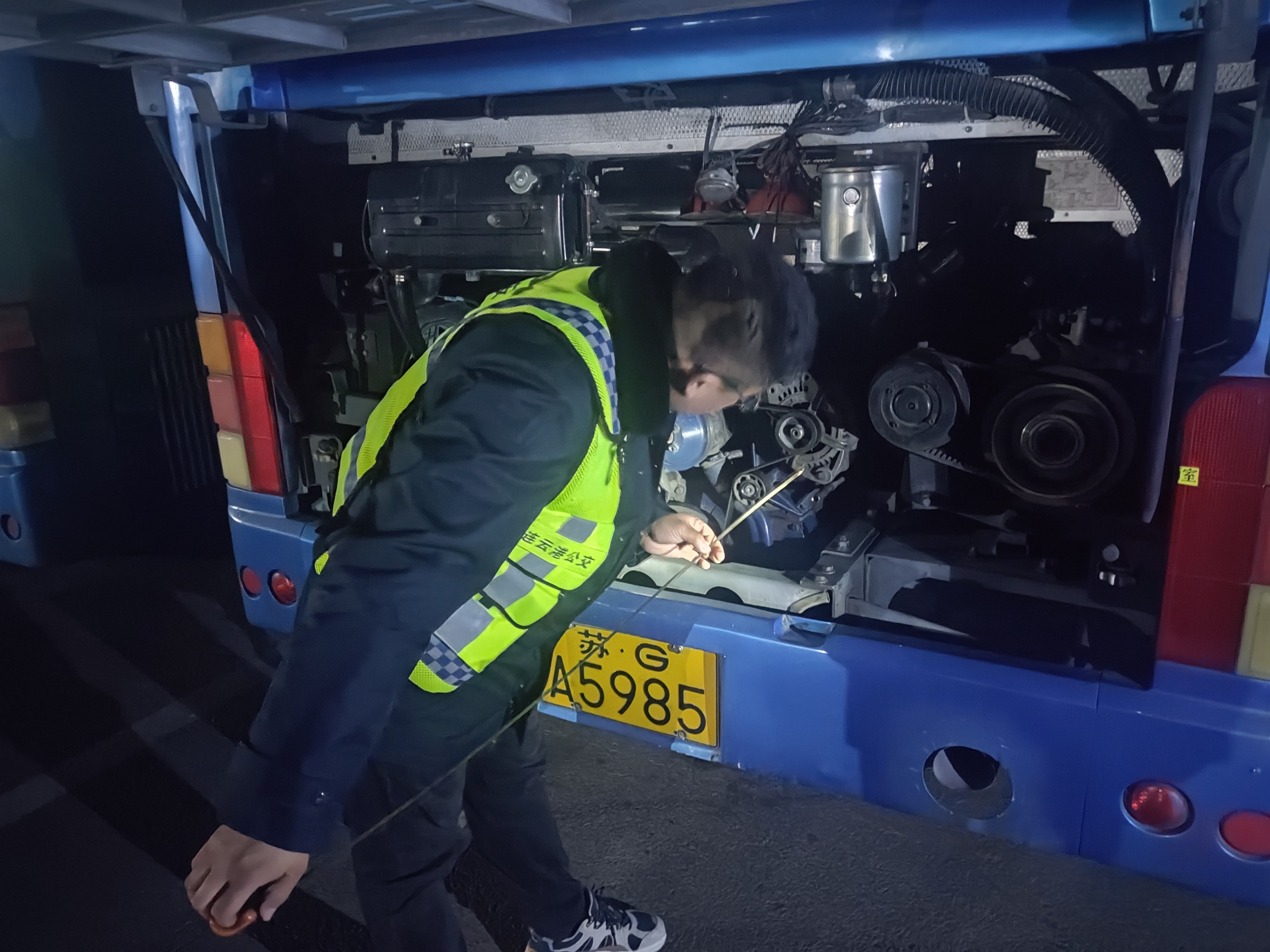 夜查行动特别关注以下关键环节:一是车辆安全检查。确保所有车辆按照规定标准停放,并仔细检查车内安全设施设备是否齐全、功能完好。同时,检查所有车门窗是否完全关闭,以及总电源和燃气阀门是否已妥善关闭,保障车辆处于安全状态。二是场站安全巡查。检查场站消防通道、消防设施管理及应急物资储备情况,夜间安保人员在岗及履职情况、为突发事件做好准备。三是驾驶员安全交代。对夜班线驾驶员进行随机抽查,评估他们对安全职责和应急措施的熟悉程度,并强调夜间行车安全,提醒避免疲劳驾驶和违规操作,确保每一位驾驶员都能以饱满的状态值好每一班岗。