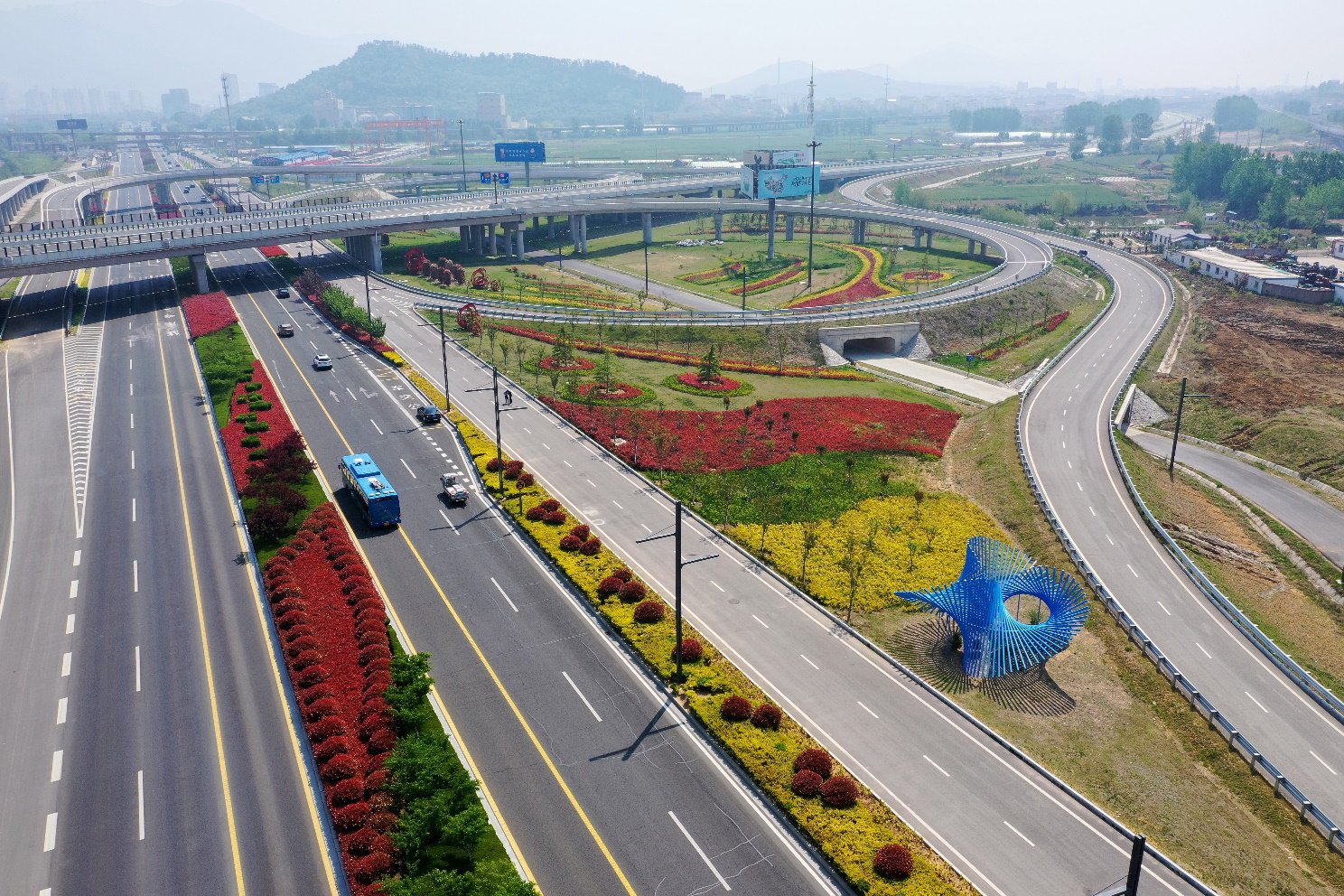 朝阳互通景观园是交通乐投app最新版下载,乐投(中国)承建的242省道朝阳互通项目的配套工程,于2019年建成,经过今春的修剪美化,搭配周边设置的数十个造型各异的雕塑,如今这里的景色更加迷人。