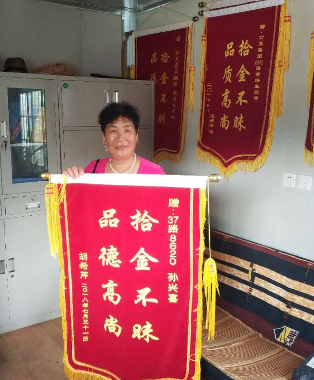 7月31日,胡女士怀着一颗感恩的心专场送来锦旗,感谢驾驶员孙师傅拾金不昧的精神,感谢工作人员的热心帮助。