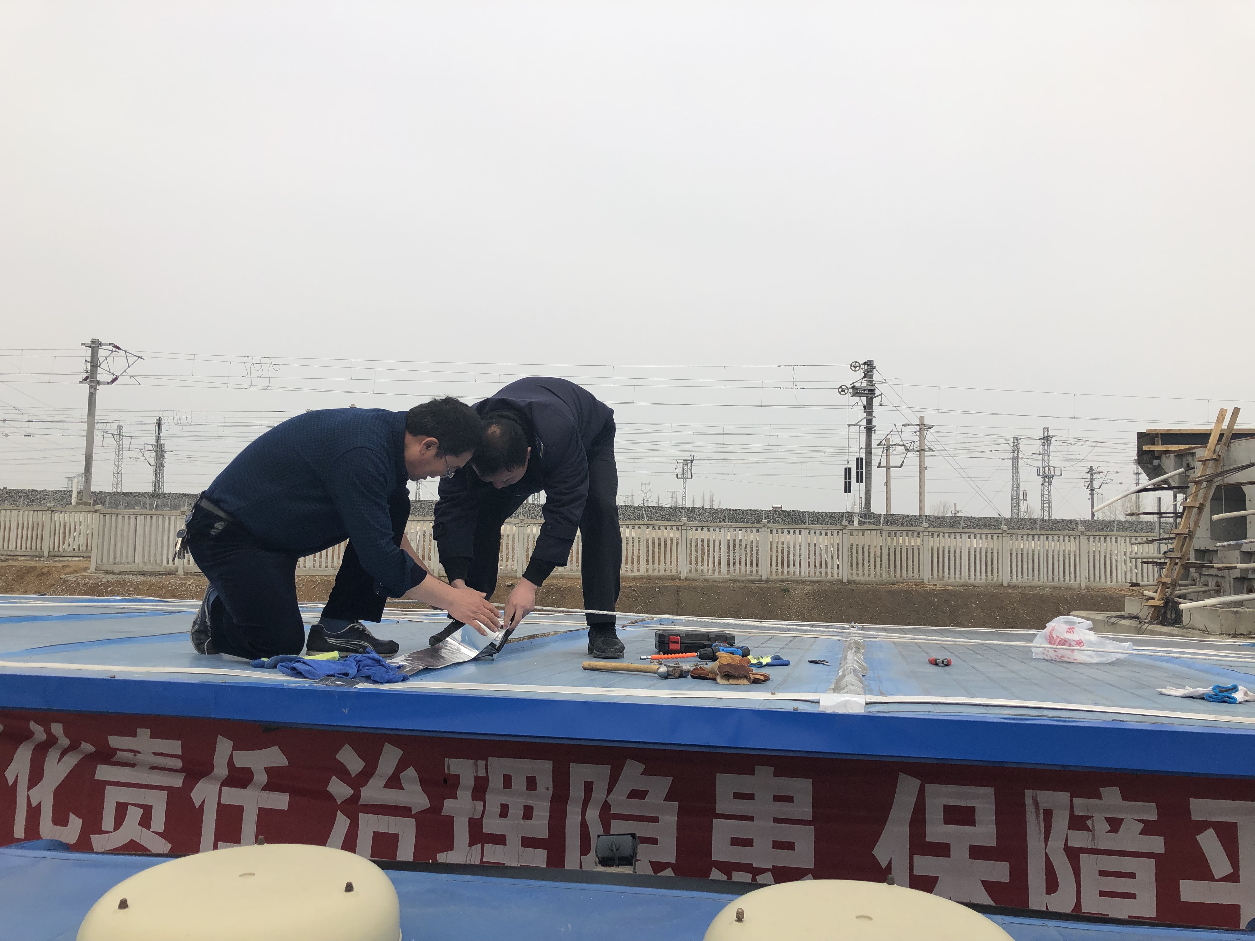 近日,江化北路停车场驾驶员饮水间房顶出现漏雨现象,导致无法正常饮水和午餐。公交乐投app最新版下载,乐投(中国)公交事业一部分公司结合实际需求,利用现有资源临时搭建了一个简易饮水间,内部配置了一台微波炉、冰箱和茶水桶,方便驾驶员跑班休息间隙使用。随后,公交事业一部分公司买来防水材料,带领管理人员爬上房顶,对漏雨的屋顶进行防漏施工补救。