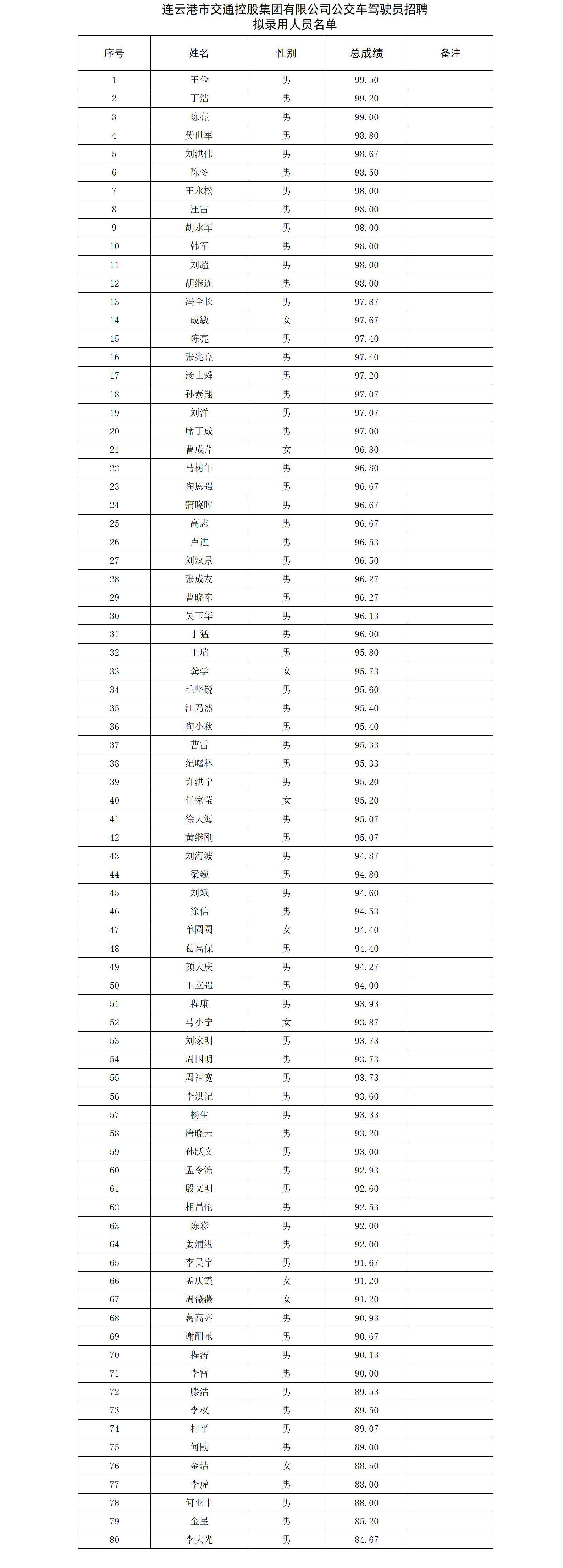 根据乐投app最新版下载,乐投(中国)公交车驾驶员招聘公告有关规定和要求,现将本次招聘拟录用人员名单予以公示。 公示时间:2025年3月21日至3月27日