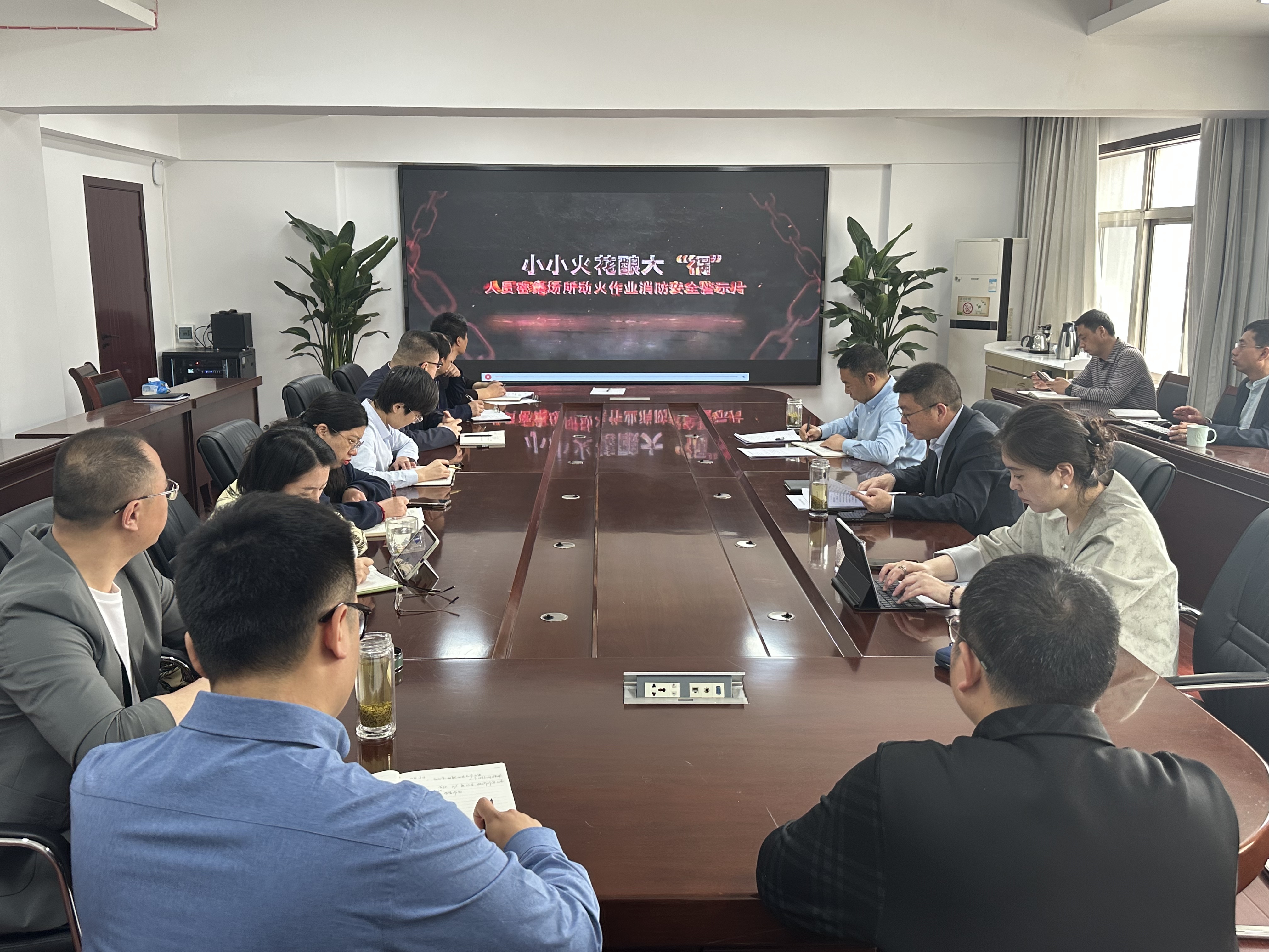 会上,观看了安全生产事故警示片《小小火花酿大“祸”-人员密集场所动火作业消防安全警示片》,安监部通报了一季度安全生产管理目标考核情况,副总经理王高林传达市安委办关于转发《国务院安委办关于江苏惠利生物科技有限公司3.11和河南周口红旗生物科技有限公司3.20两起较大爆炸事故的通报》的通知文件精神,总结报告一季度安全生产工作,并部署“五一”期间安全生产工作。