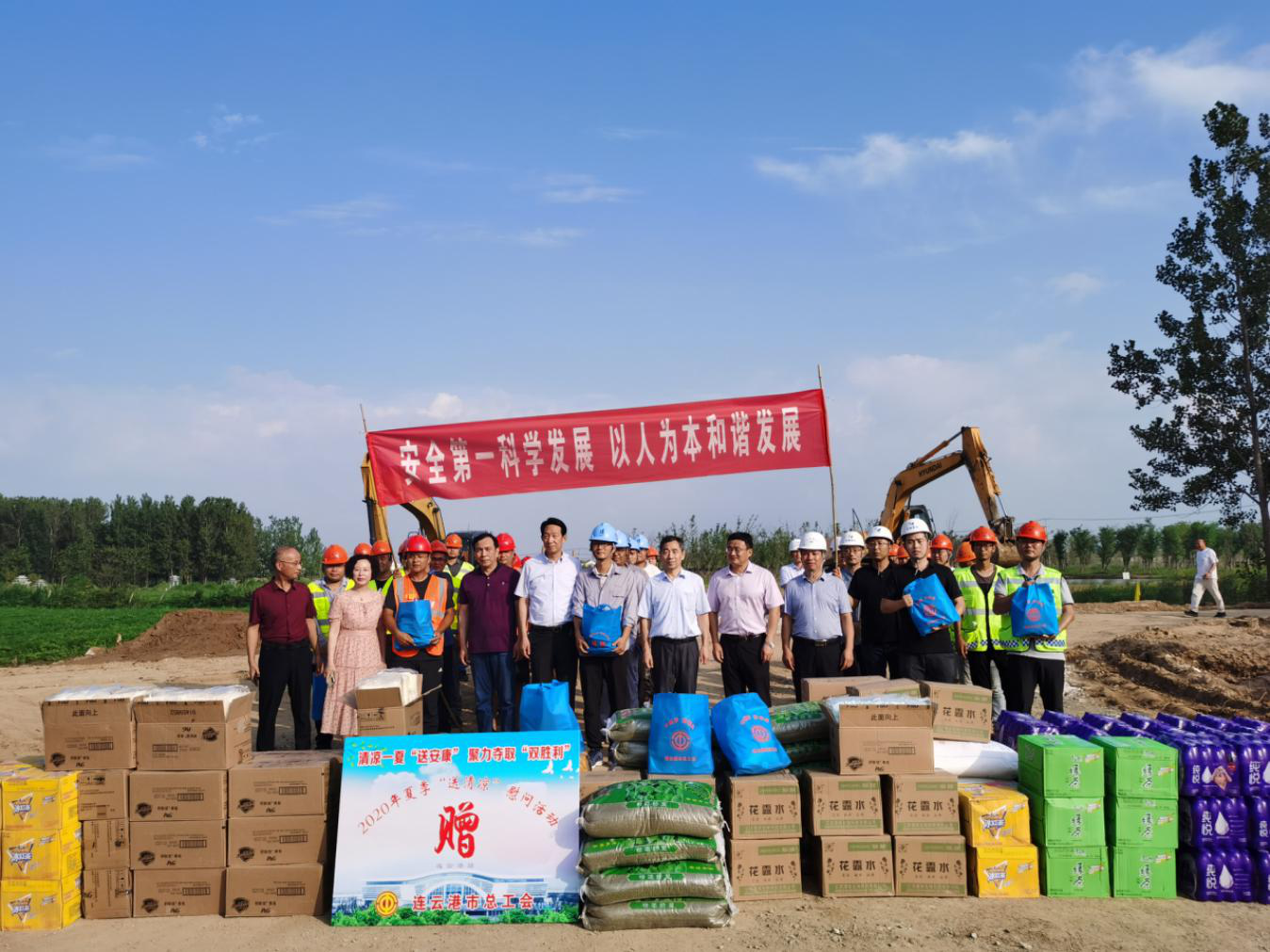 近日,连云港市总工会副主席张明富一行来到石梁河生态修复一期工程现场举行“送清凉”活动,为奋战在施工一线的建设者们送上了慰问和关怀。市交通控股乐投app最新版下载,乐投(中国)工会主席王中永、副总经理吴心航参加慰问。