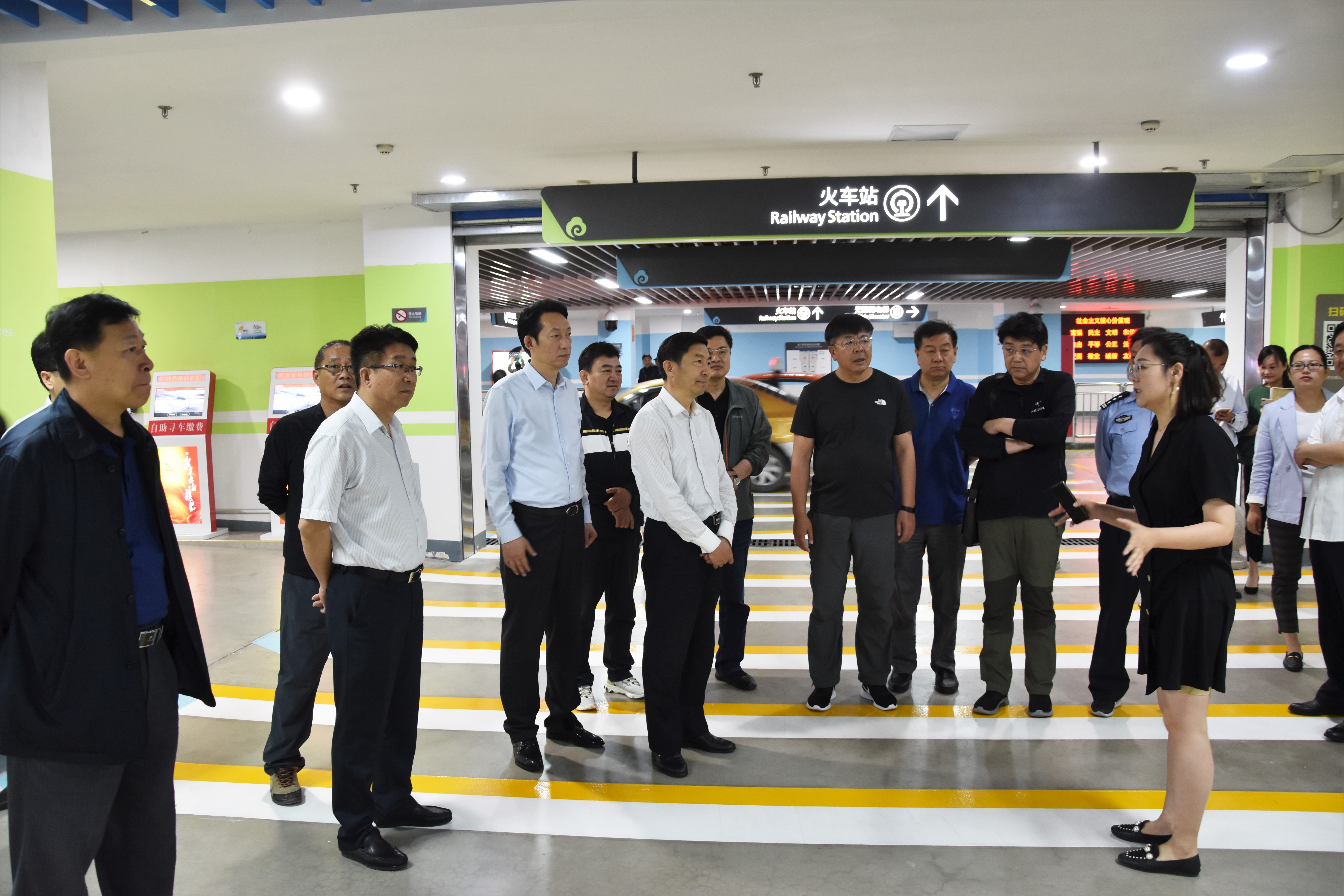 考察组一行实地参观考察了综合客运枢纽的建设成果,听取了有关综合客运枢纽交通组织、分区布局、智能诱导、反向寻车等设计与功能的介绍,并询问了反向寻车系统的运用、出租车运营等方面。