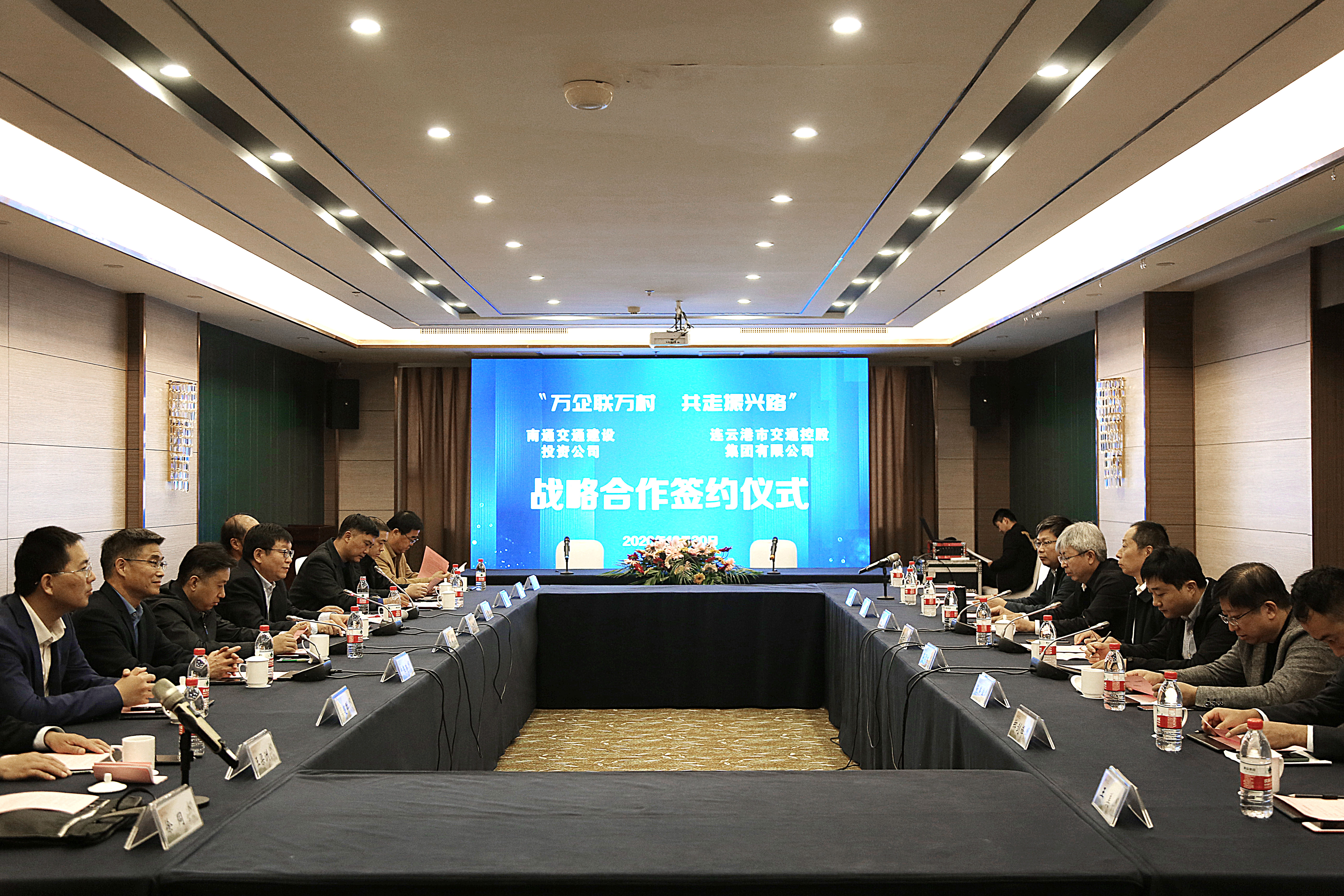 10月30日上午,连云港市交通控股乐投app最新版下载,乐投(中国)和南通交通建设投资公司签订“万企联万村 共走振兴路”合作协议、战略合作协议,连云港市国资委党委委员、副主任许峰;南通市国资委党委委员、主任助理季士军;连云港市交通控股乐投app最新版下载,乐投(中国)董事长、党委书记刘永能,总经理仲伟涛,副总经理孙超;南通交通建设投资公司总经理徐中,党总支副书记张燕滨等参加了签约仪式。